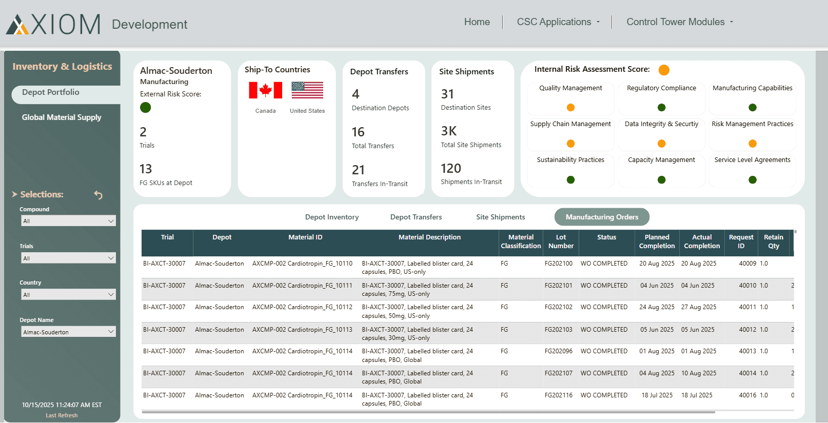 Supply planning and shipment tracking, quality release of batches often happen in separate systems, slowing down rebalancing and delaying cold chain issue detection. Inventory & Logistics bridges these gaps, connecting plans directly to movements so teams can act before issues disrupt sites.